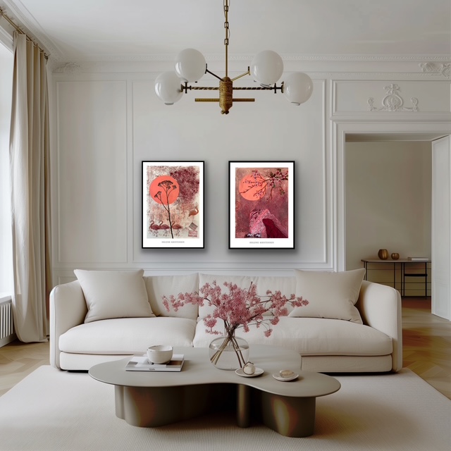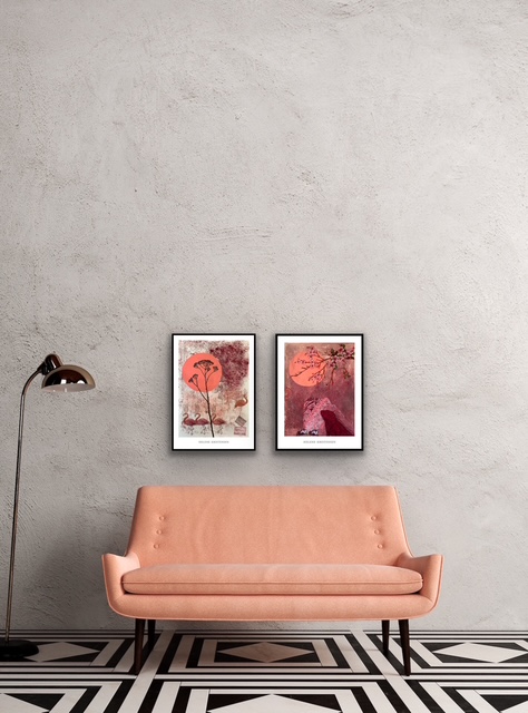 Værket udstråler en fin balance mellem det naturlige og det dekorative. De lange, slanke halse og de bløde former skaber en rolig rytme, der inviterer til fordyrelse og eftertanke. Plakaten passer perfikt ind i både den nordiske minimalisme og i hjem, der elsker et strejf af eksotisk poesi.